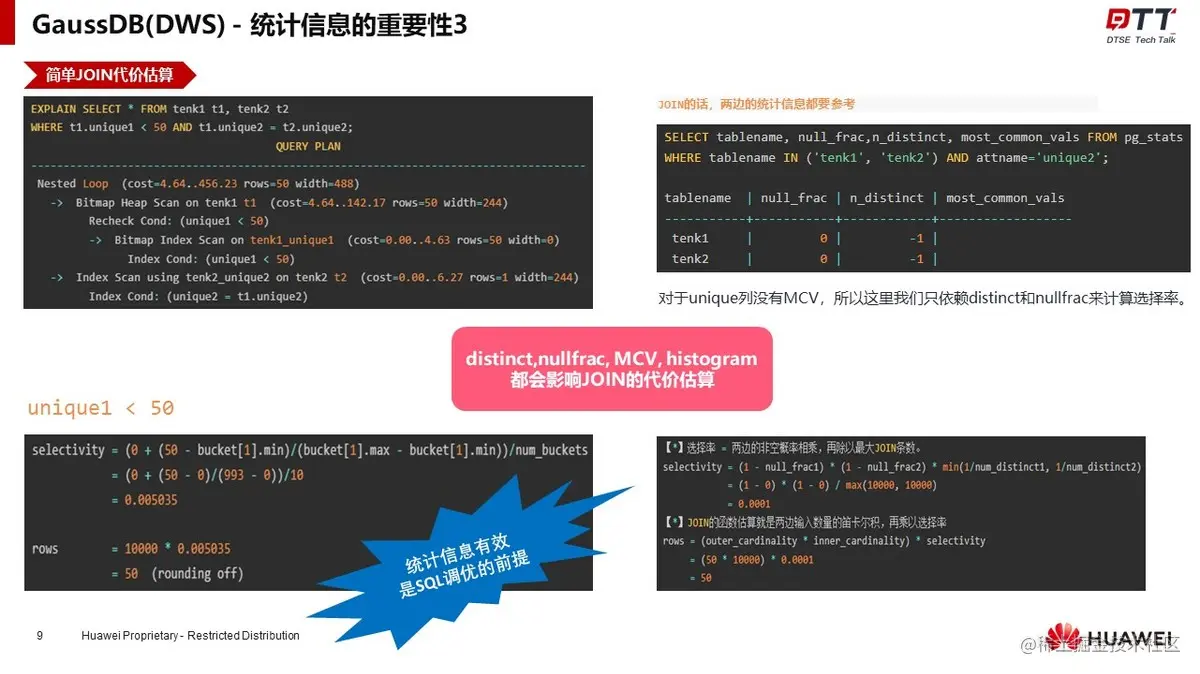 通过“基本功能”,“收集方式”,“准确性”,“可靠性”,“估算增强”,详细的介绍了华为云GaussDB(DWS)近年来在统计信息方面的持续耕耘和比较有亮点的特色功能。