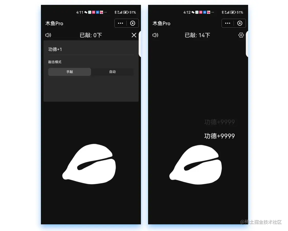 FinClip 应用市场中有一款小程序叫做木鱼pro,“自动敲木鱼,烦恼渐远去”,告别传统敲木鱼方式,更"环保",遇到烦心事随时随地打开木鱼小程序来静下心修炼。