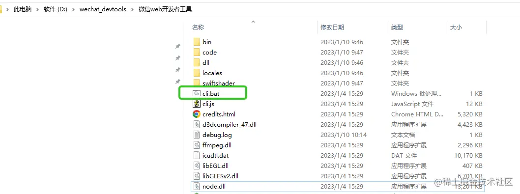 笔者使用的是windows系统,命令行工具在开发者工具安装目录的根目录下面,如下图所示: