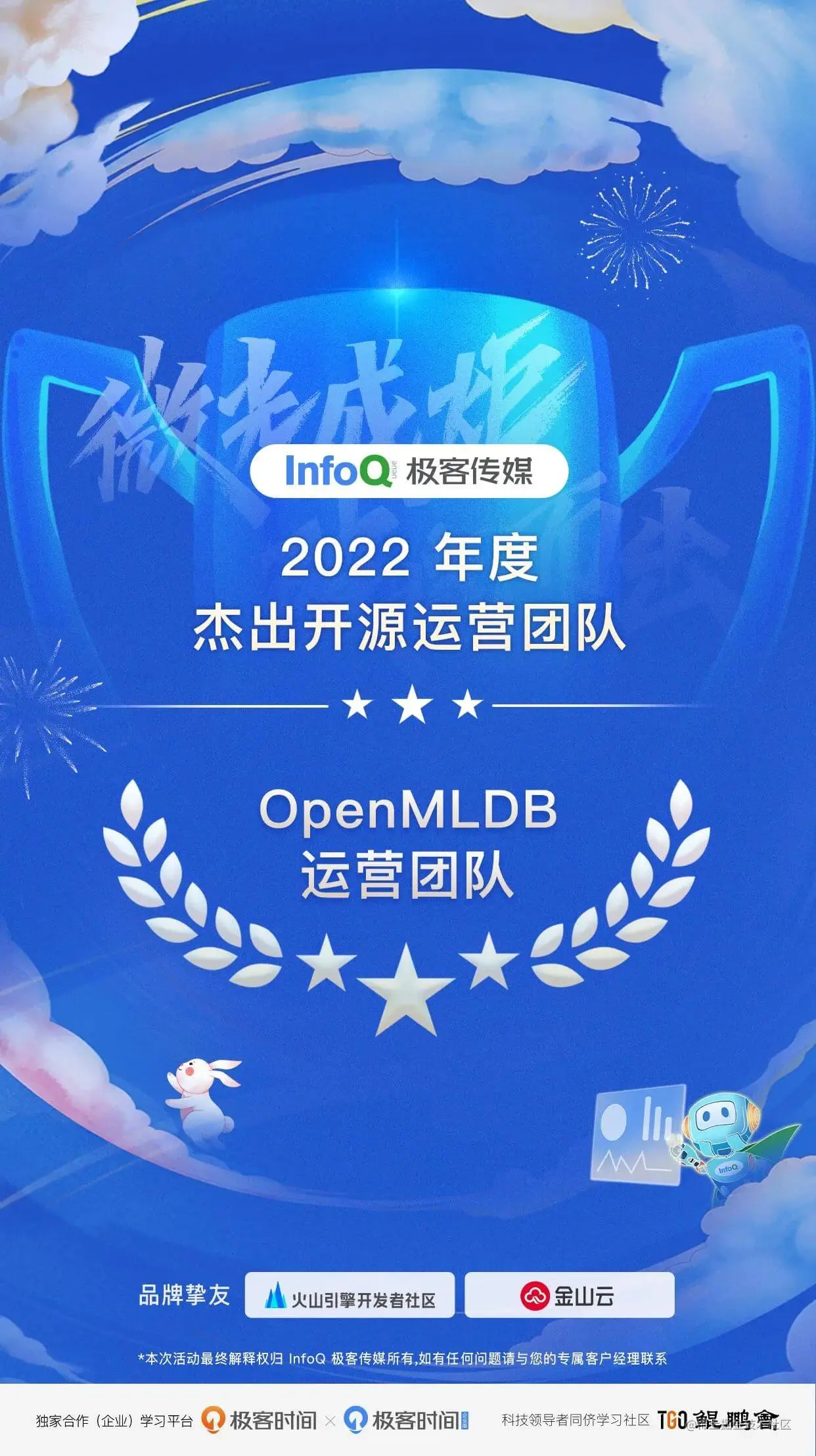 近日,在 InfoQ 合作伙伴年度盛典上,InfoQ 中国技术力量 2022 年度榜单正式公布,OpenMLDB 荣获“2022 年度杰出开源运营团队”。