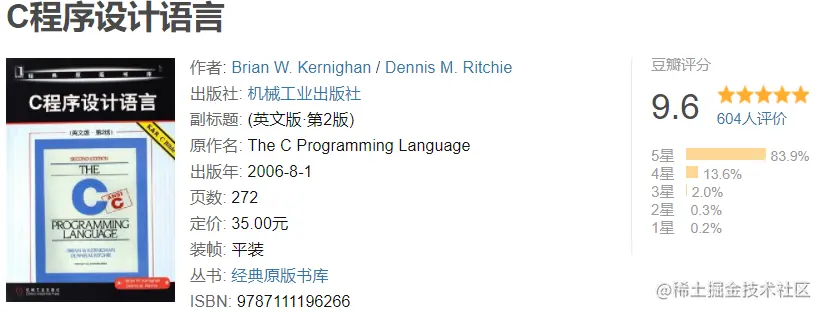 如果只能推荐一本 c 语言学习书籍,那么我一定推荐的是这一本:《C程序设计语言》。