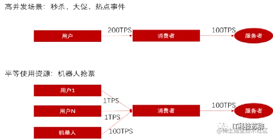 秒杀、大促和热点事件等场景,会产生超出系统处理能力的流量,这些流量如果没有被快速丢弃,就会占用大量的处理资源,并触发系统处理链路的大量超时甚至系统瘫痪。有机器人参与的情况下,资源容易被机器人全部抢走,正常用户得不到公平合理的处理资源。