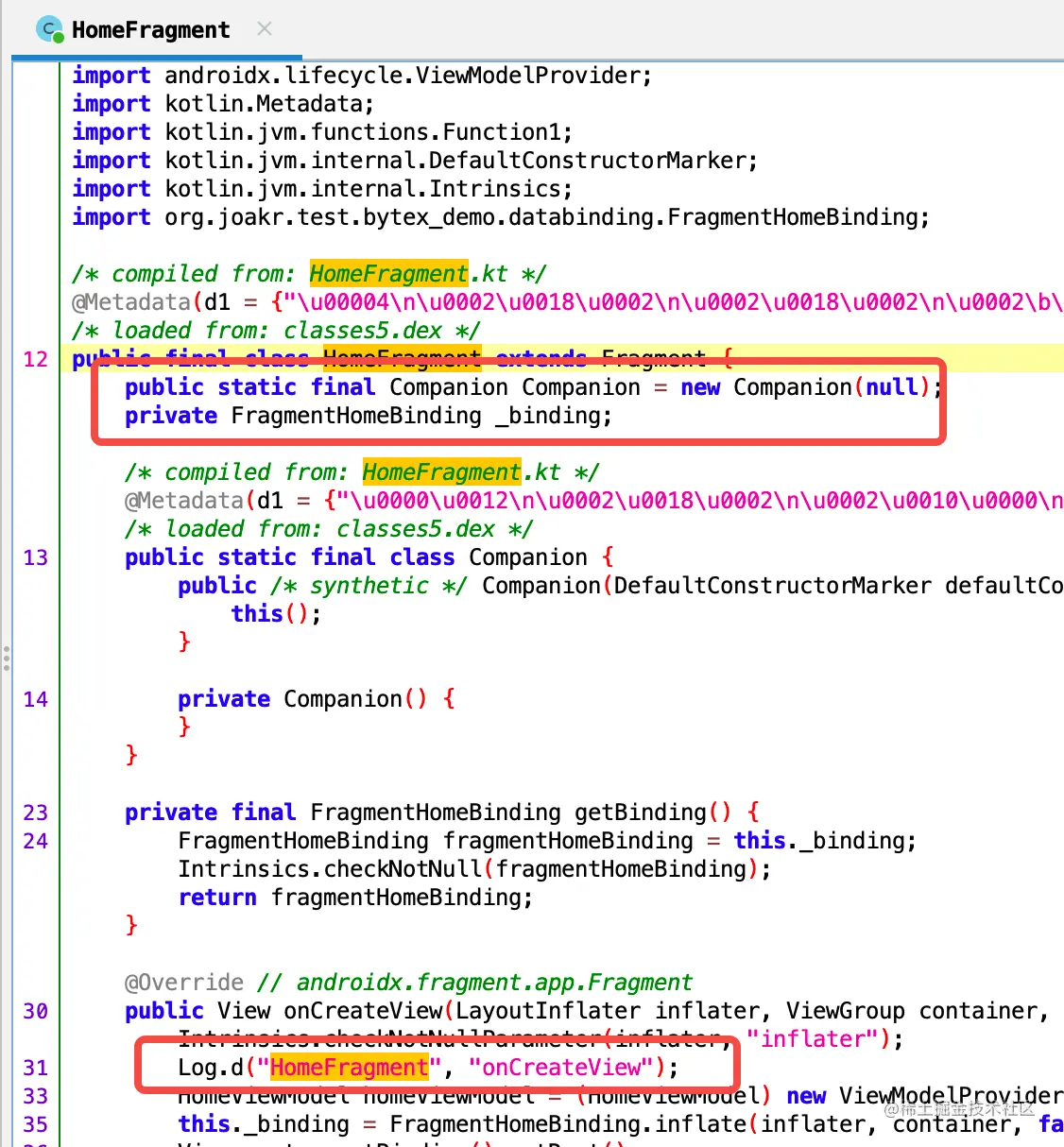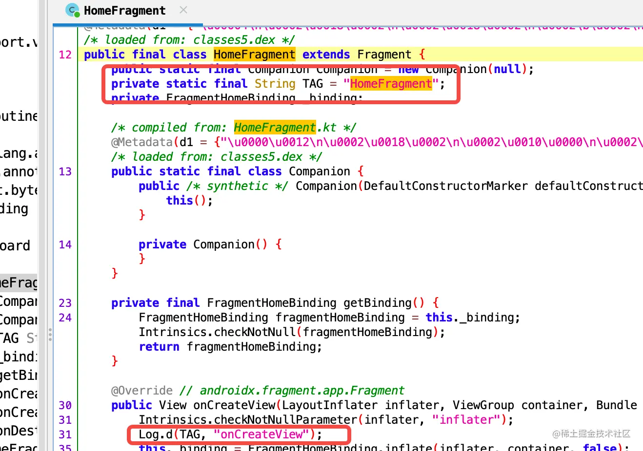 可以看到在LoginFragment类里设置了两个变量,TAG 、calzzName然后smail代码可以看出在LoginFragment类的初始化clinit方法里对calzzName做了变量赋值的操作(前缀 s 的 sput 和 sget 指令用于静态字段的读写操作。即PUTSTATIC/GETSTATIC指令)