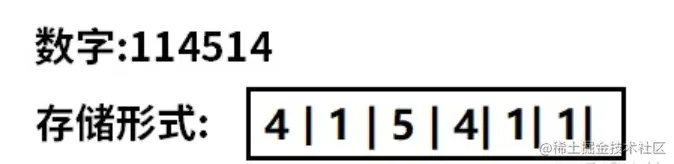 我们使用数组来存储高精度数字,并且采用倒序的方法,如下图。