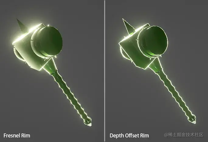 适合等宽硬边缘, 相比于 Fresnel Rim, 在法线比较一致的部分表现更好