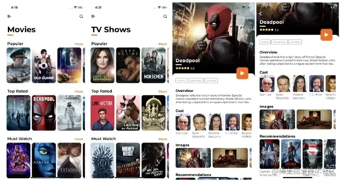 相信一目了然你就知道这是一款电影APP。 这是一款使用 TMDb API 开发的应用,它提供许多功能,如搜索电影和电视节目、发现电视和电影、观看相关视频、查看与电影相关的图片等。