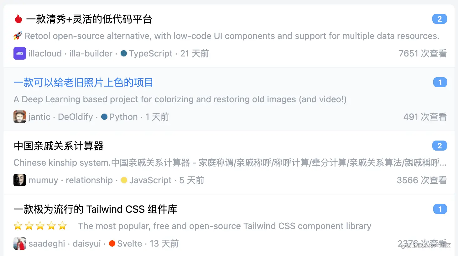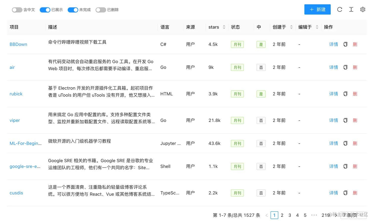 这些未处理的项目,因为信息不全所以没有详情页,这就是为什么明明有的项目在月刊中,但是就是搜索找不到的原因。现在网站一期的功能已经开发完,后面我会全力梳理已有的开源项目,争取在 3 月份的时候全部搞定!