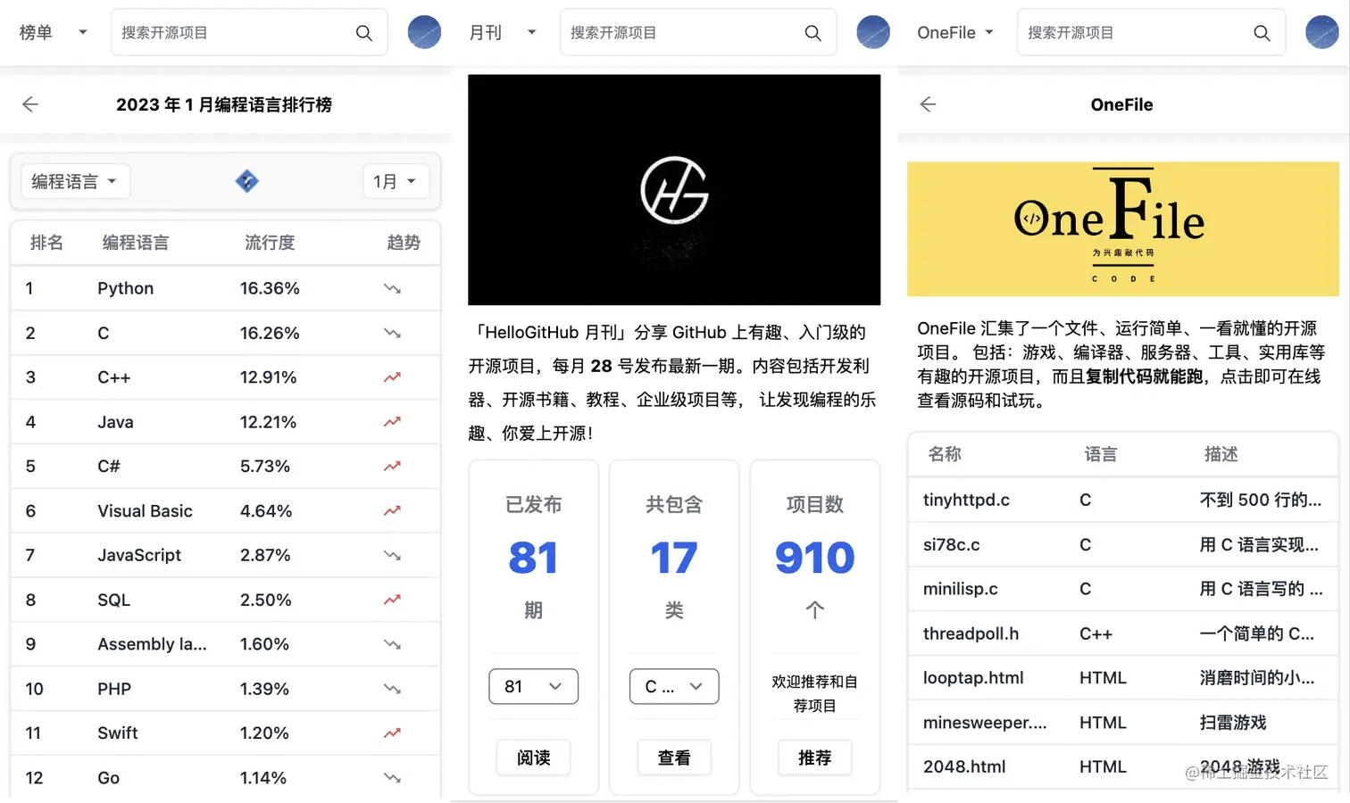 不仅如此,我还对旧网站的月刊、编程语言排行榜、文章等模块做了移动端适配。