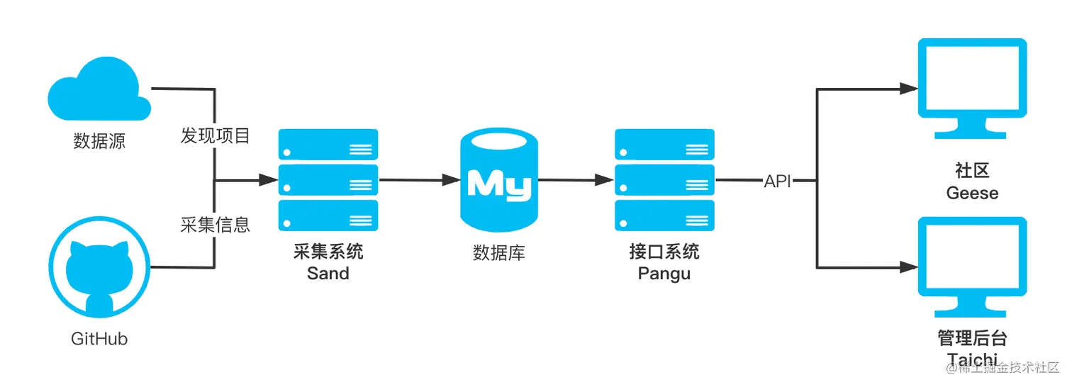 这就相当于把月刊打散,最小单位从月刊改成开源项目,从而实现围绕开源项目的首页信息流,以及根据标签过滤开源项目、搜索等功能。