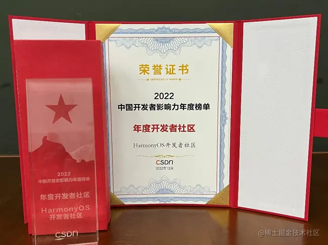 2022年12月28日,CSDN在北京举行“2022 中国开发者影响力盛典暨 CSDN 企业生态汇”活动,正式发布了2022中国开发者影响力年度榜单,HarmonyOS凭借在开发者社区领域做出的卓越贡献,荣获“CSDN年度开发者社区”奖项!