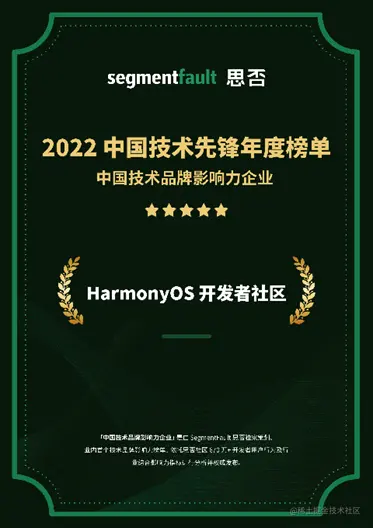 2023年1月4日,开发者社区 SegmentFault 思否发布“2022中国技术先锋年度榜单”,旨在推动科技企业进一步提升技术品牌声量,加速生态建设,HarmonyOS开发者社区凭借科技创新实力入选30强之列。