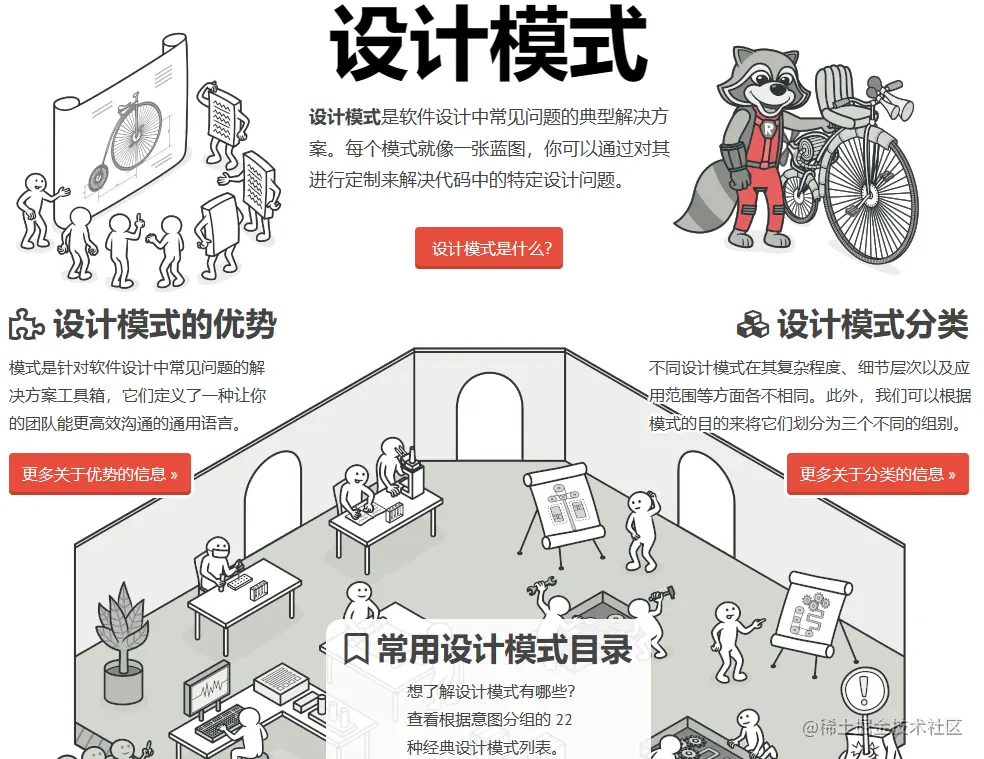 设计模式是软件设计中常见问题的典型解决方案,它们就像能根据需求进行调整的预制蓝图, 可用于解决代码中反复出现的设计问题。那么常用设计模式有哪些?一个国外网站,收集了常见的22种经典设计模式学习,提供在线介绍学习,图文并茂、通熟易懂,并且提供代码解释实现,网站建立的初衷,是帮助开发者以更为简单便捷的方式,迅速掌握各个设计模式的学习,而且提供中文、英文等等多种语言供用户学习,非常不错。