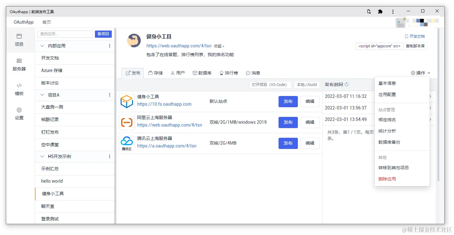 OAuthApp 是一个前端发布工具,用于快速开发前端网页项目,并发布到服务器。