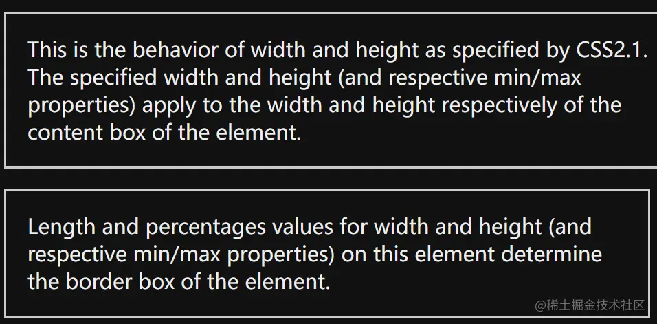 content-box:是默认值,设置border和padding均会增加元素的宽高。 border-box:设置border和padding不会改变元素的宽高,而是挤占内容区域。