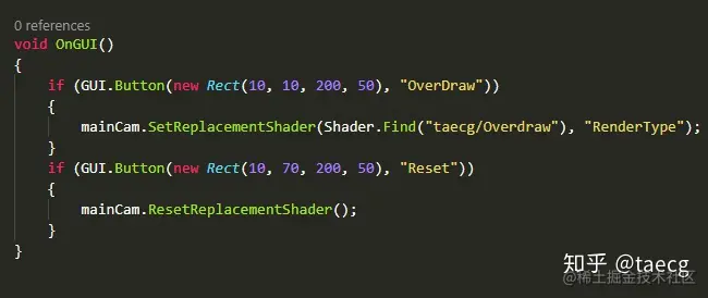 它的作用是可以利用 Camera.SetReplacementShader 来更改最终的渲染效果。先说下这条语句的语法: