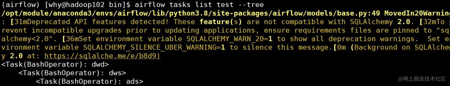 airflow tasks list test --tree:查看单个任务(test)(以树形结构打印)
