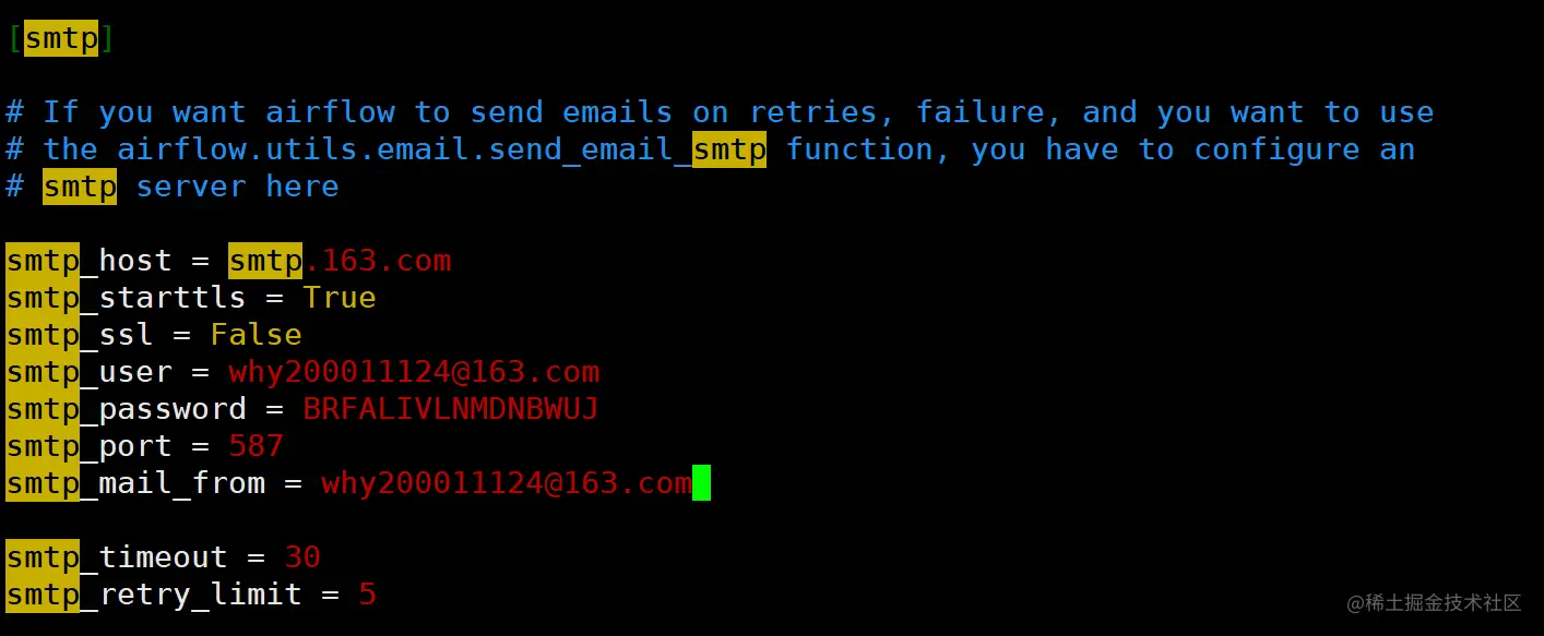 port:SMTP服务器端口,163邮箱为25,QQ邮箱为465或587