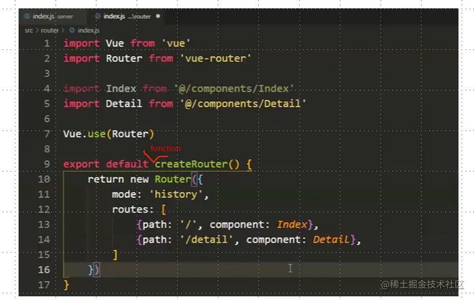 每次用户请求都需创建router实例,区别于spa的单用户请求,一般多用户请求 故使用创建函数createrouter而不是router实例