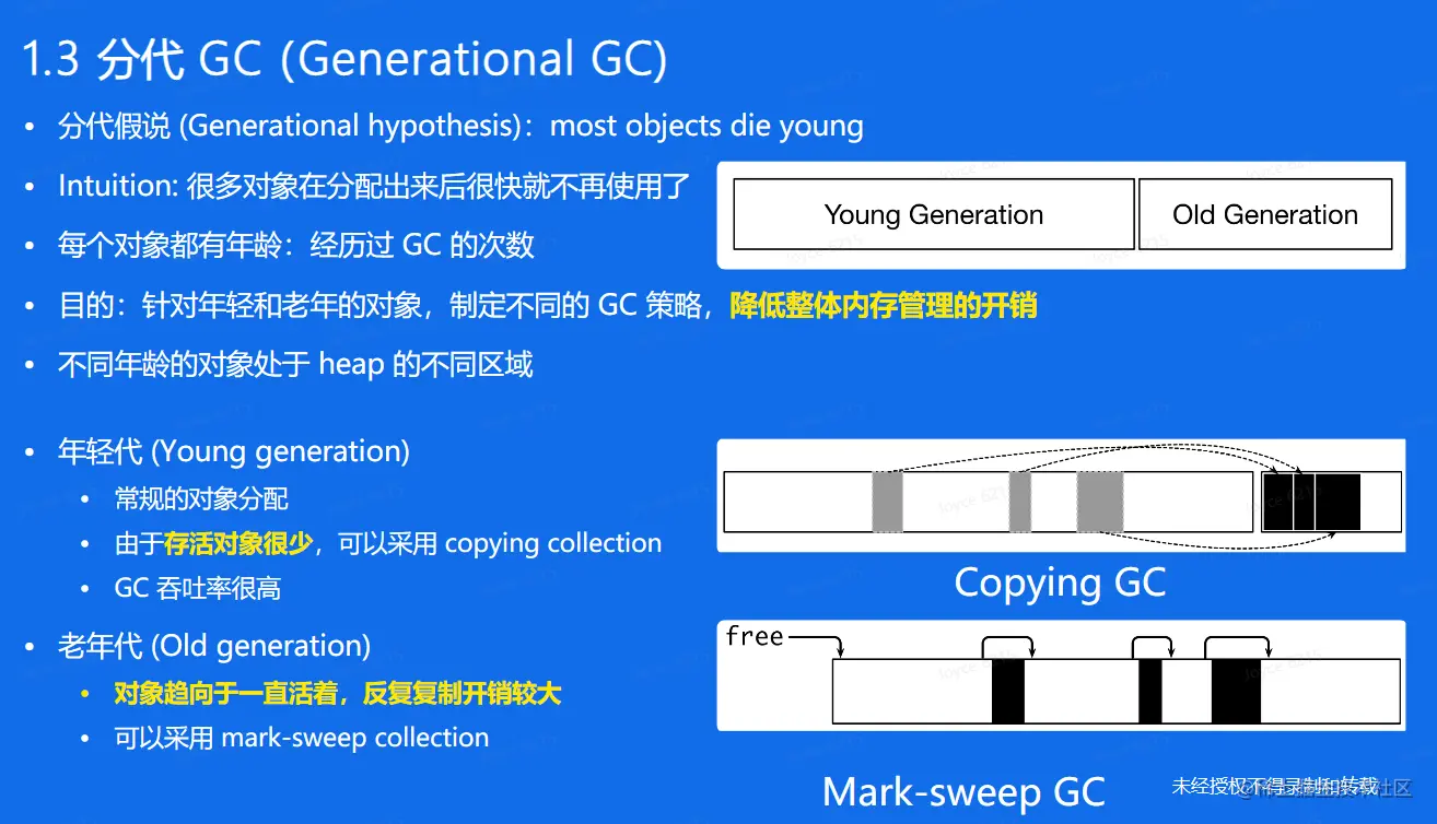 - Copying GC: 将对象复制到另外的内存空间