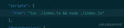 "run": "tsc <ts入口文件路径> && node <编译后的js入口文件路径>"