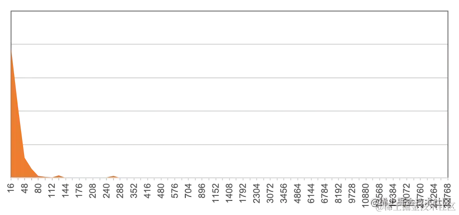 横轴是对象大小,纵轴是数目,可以看到绝大多数对象都小于 80 B。因此优化小对象分配是关键。