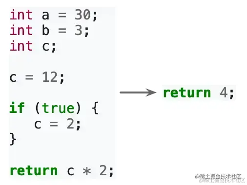 - 例如上面的程序。我们通过分析数据流和控制流,知道这个程序始终返回 4。编译器可以根据这个结果做出优化。