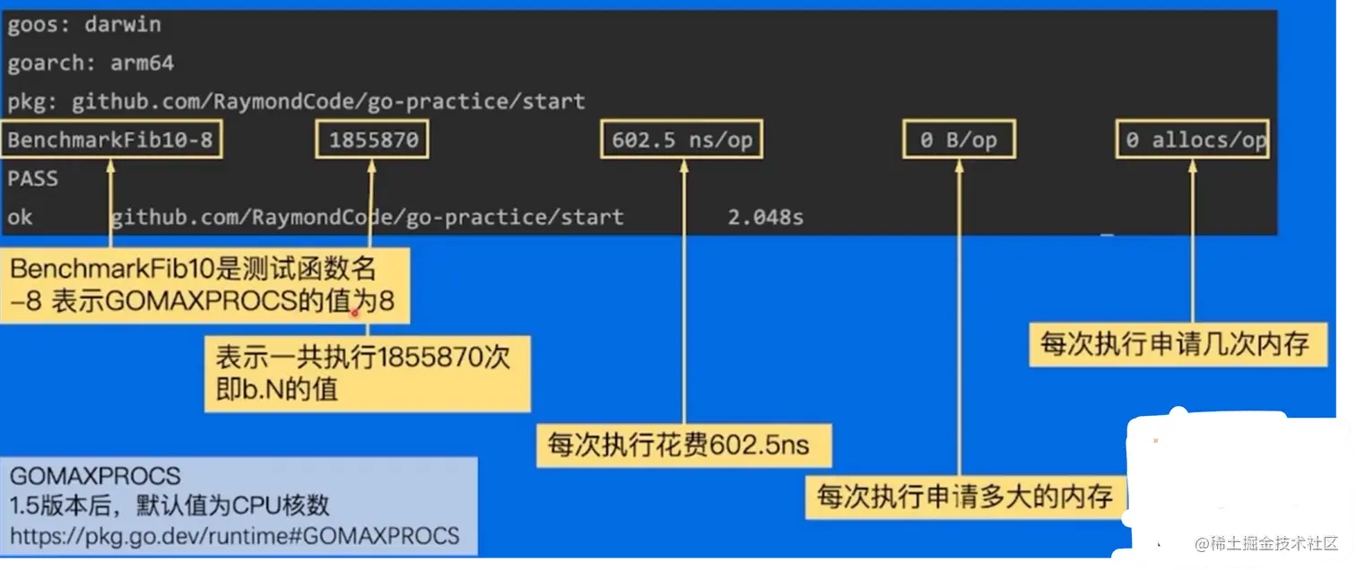 Go提供了支持基准性能测试的benchmark工具