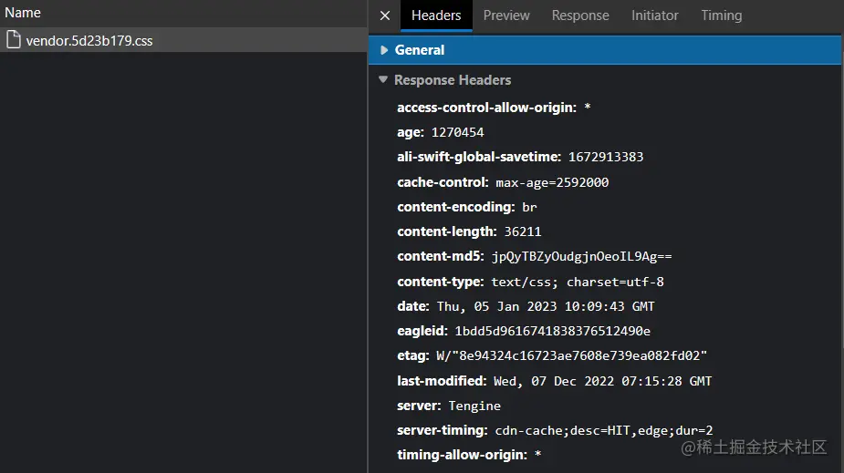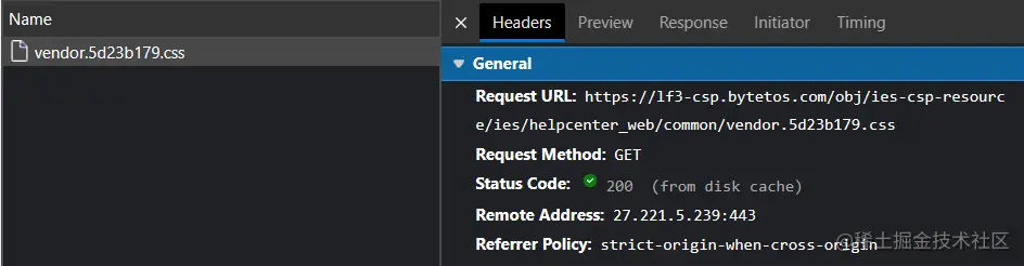 从图中看到,是从本地缓存获取的 css 文件