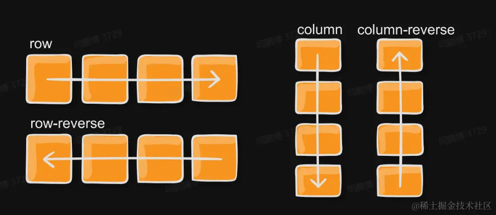 flex-direction:指定了内部元素是如何在 flex 容器中布局的,定义了主轴的方向(正方向或反方向)。