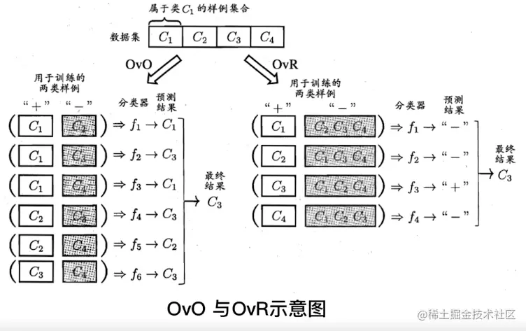 “拆分法”:可以解决多分类问题,即将多分类任务拆为若干个二分类任务: