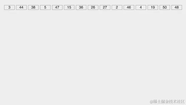 - 重复第二步,直到所有元素均排序完毕。