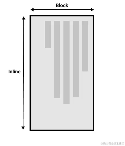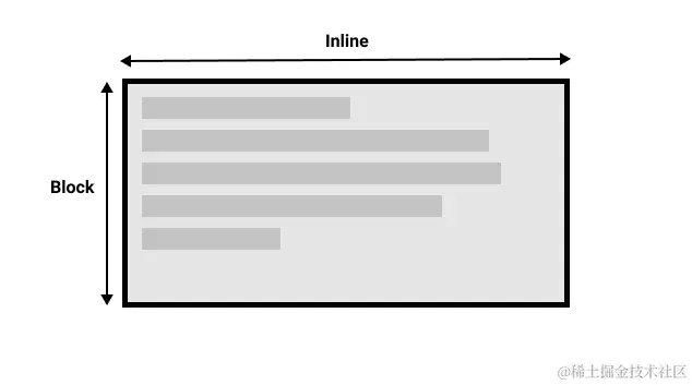 当我们切换书写模式时,我们也在改变块和内联文本的方向。horizontal-tb书写模式下块的方向是从上到下的横向的,而 vertical-rl书写模式下块的方向是从右到左的纵向的。因此,块维度指的总是块在页面书写模式下的显示方向。而内联维度指的总是文本方向。