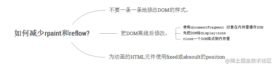 在页面显示的过程中会多次进行Reflow和Repaint操作,而Reflow的成本比Repaint的成本高得多的多。因为Repaint只是将某个部分进行重新绘制而不用改变页面的布局,如:改变了某个元素的背景颜色。而如果将元素的display属性由block改为none则需要Reflow。