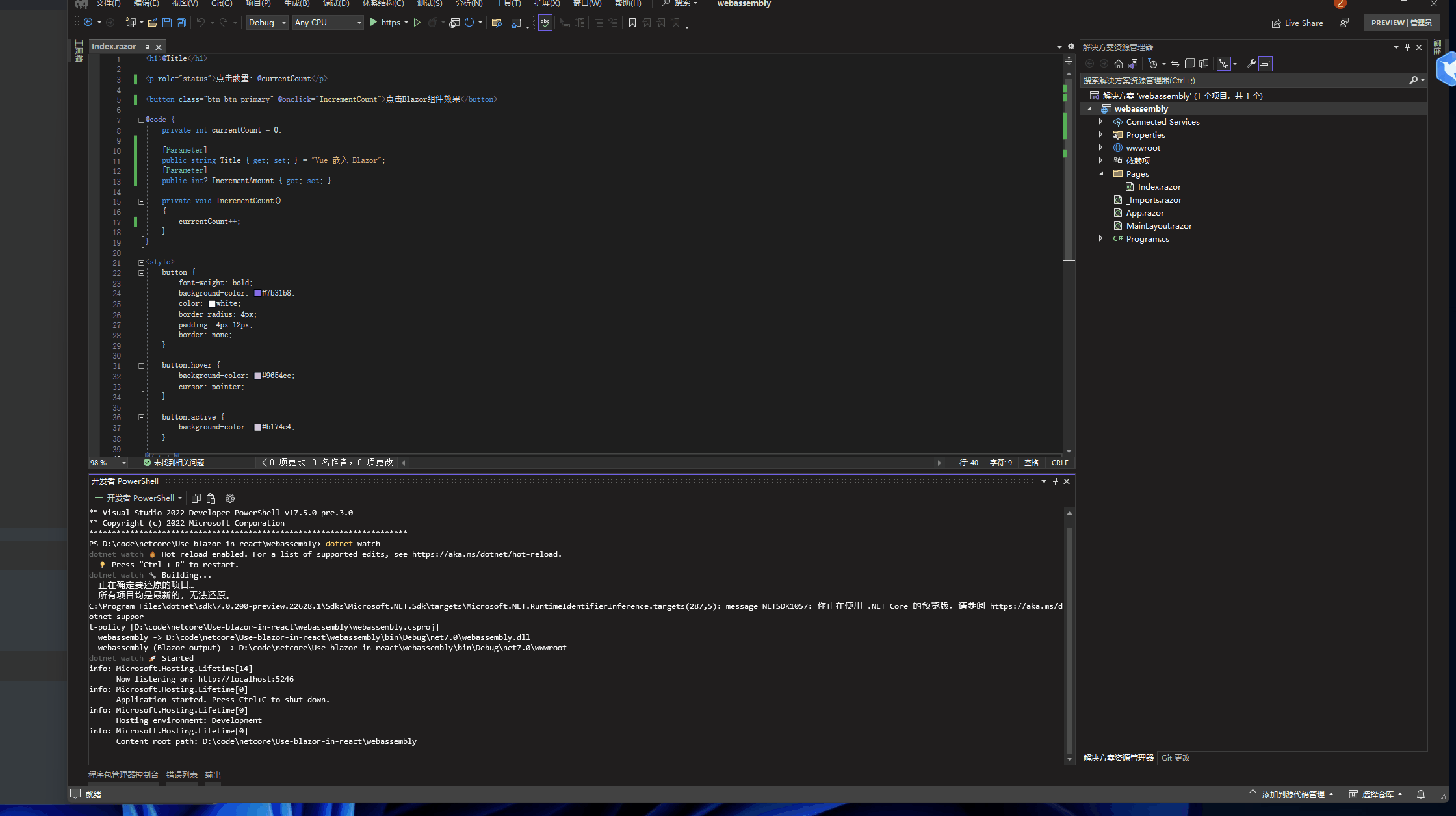 我们进入到Blazor项目中准备执行blazor项目