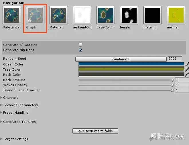 所以 很好的一种方式 是导入 Unity 中为 sbsar 格式的文件,然后在此面板搭配场景细微调整自己需要的效果。
