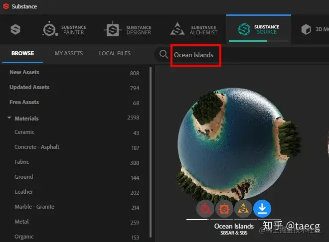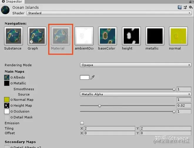 首先把你的 sbsar 格式的文件拖入到 Unity 中(我这里以在 Substance Source 中下载的 Ocean Islands 为例).