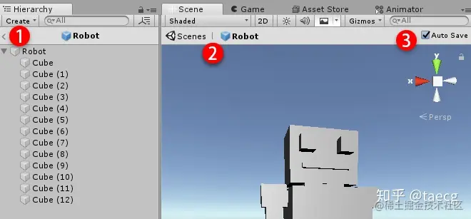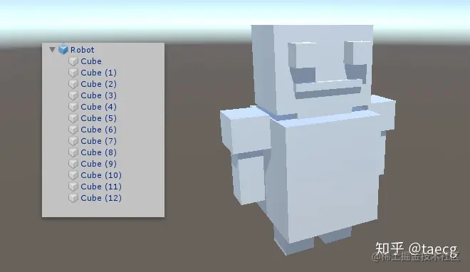 首先要说下如何生成 Prefab,以一个机器人 Robot(利用一些基本 Cube 拼出一个机器人)为例: