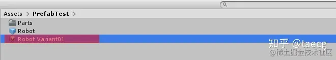 然后在原始 Prefab 边上就会出现一个变体资源,注意 图标样式与普通 Prefab 是不同的。