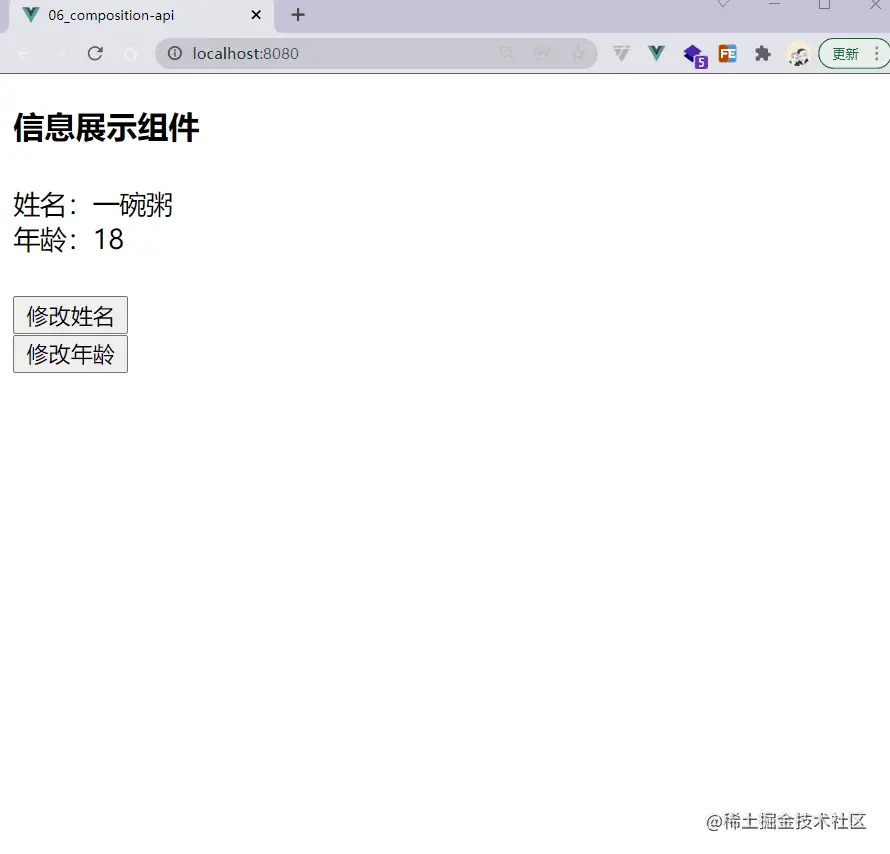 <button @click="data.name = '一碗周'">修改姓名</button>