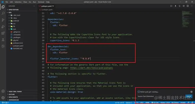 Go to dev_dependencies and add flutter_launcher_icons: “^0.8.0” dependency and save the file. It will get the dependency.
