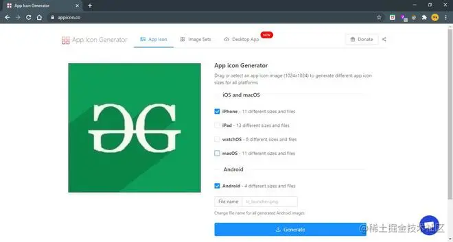 Go to ****https://appicon.co/ ****and upload the icon image and tick the iPhone and Android options and click on Generate. This site generates different sized Icons for both android and IOS at the same time.