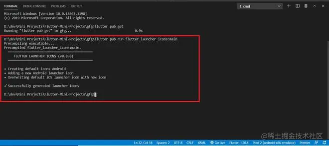 After manually changing the images in android and IOS folders now go to lib/main.dart and run the flutter project using the below command in the flutter console.