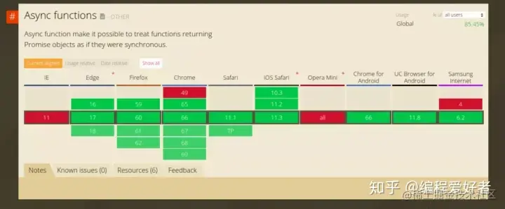 除了可读性,async/await 还对浏览器提供了原生支持。目前所有的主流浏览器都完全支持异步功能。