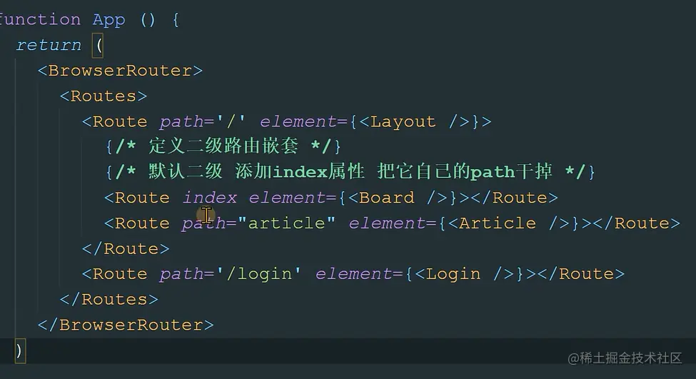 语法说明:path属性指定匹配的路径地址,element属性指定要渲染的组件