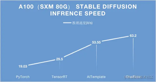 而在 Stable Diffusion 推理的性能表现上,在 A100 显卡,无论是 PCIe 40GB 还是 SXM 80GB 的配置,相比其他深度学习框架或编译器,OneFlow 的性能都是最快的。