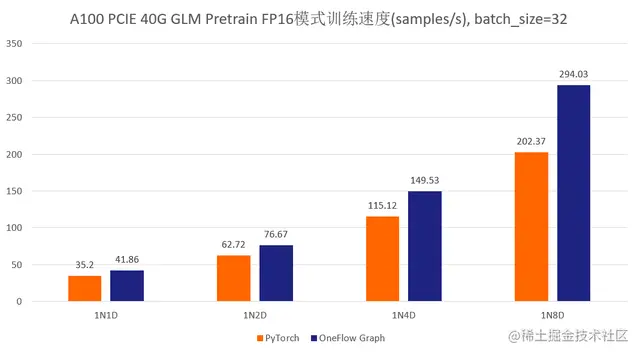 相比原始的基于 PyTorch、DeepSpeed、Apex 的 GLM 实现,基于OneFlow v0.9.0 训练 GLM-large(335M) 预训练模型,在简单调优后性能最高提升 3 倍,显存节省 1/3。