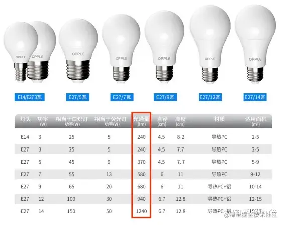 现在几乎所有的电灯包装上都会注明其发光强度,而且由于科技发展电灯的发光能力变强,1 W 的电灯也不一定对应 1 cd 的发光强度了,所以最好是查看淘宝或者是灯具厂家的数据标注。