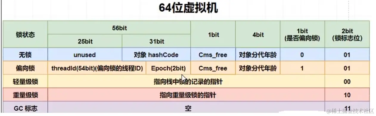markword中得锁标记位得变化。锁的指向变化如下图。