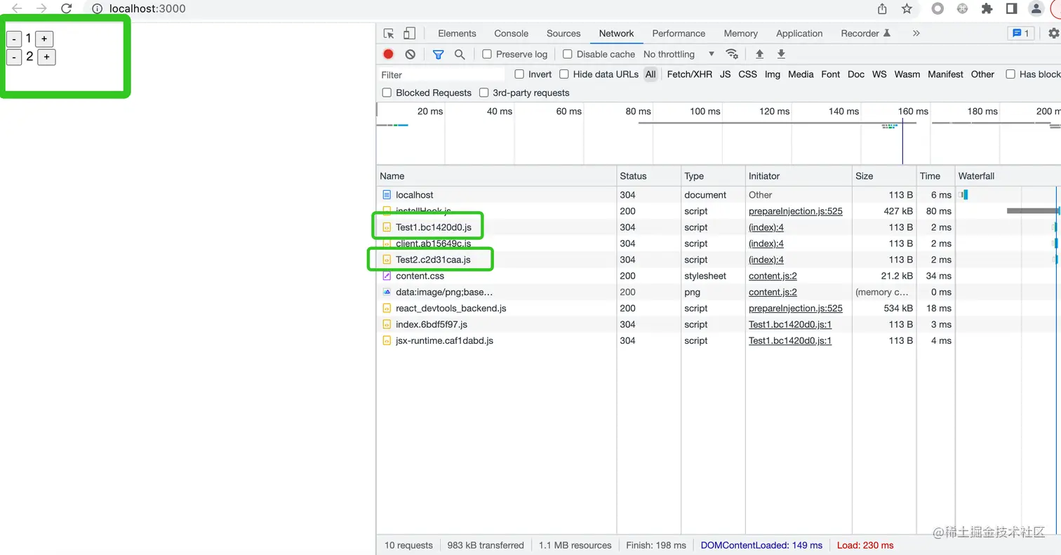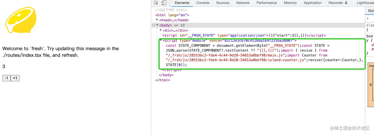 浏览器执行这些代码时,会给服务端发起/islands/Counter的请求,服务端接收到请求,对 Counter 组件进行实时编译打包,然后将结果返回给浏览器,这样浏览器就能拿到 Esbuild 的编译产物并执行了。