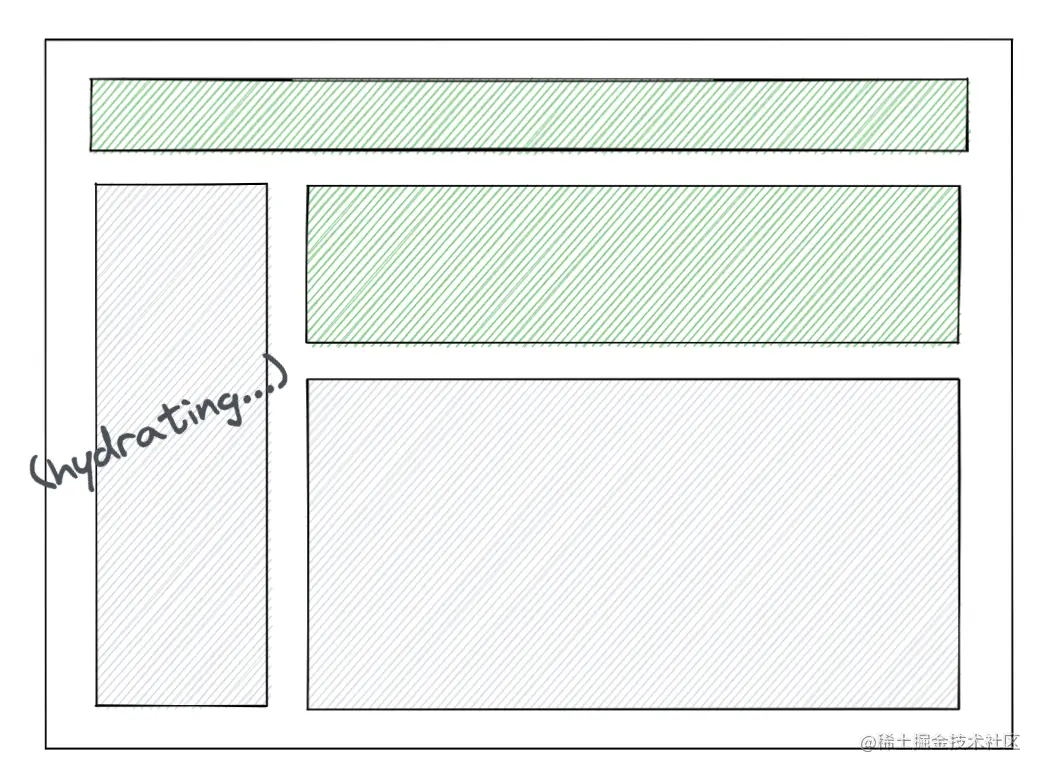 - hydration 可中断。比如页面中有两个组件: Sidebar 和 Comment,当这个部分的 HTML 发送至浏览器时,React 打算开始对 Sidebar 组件进行 hydrate: